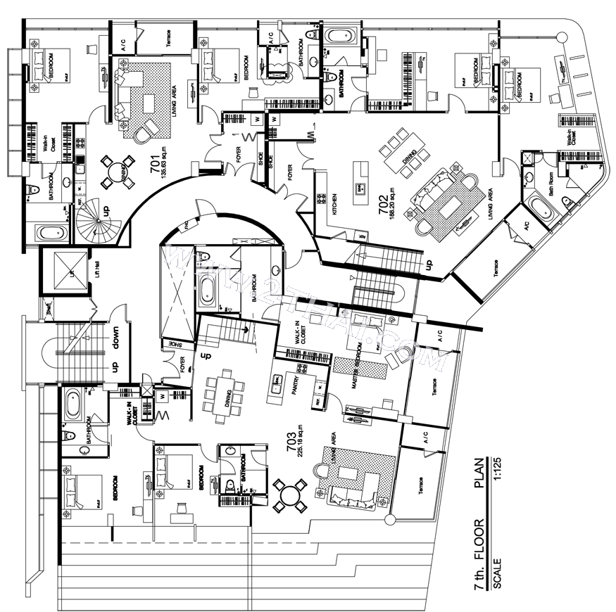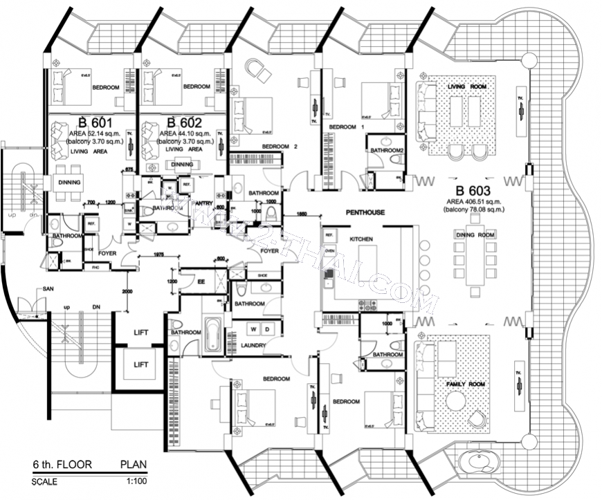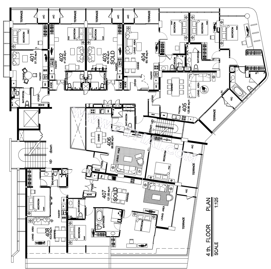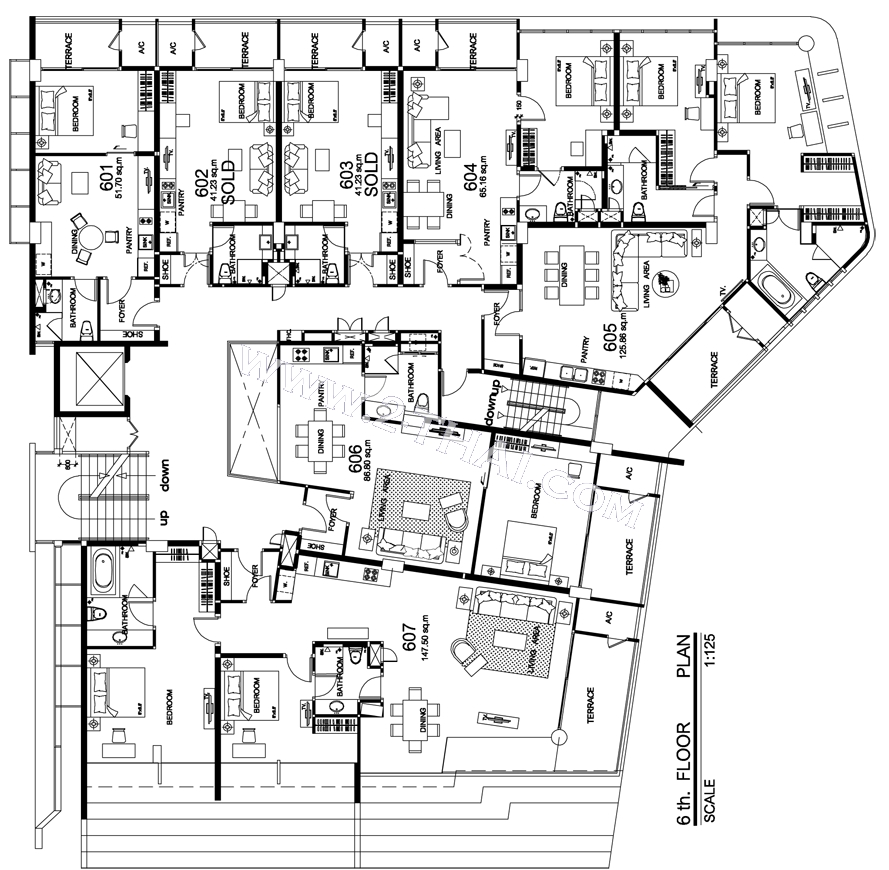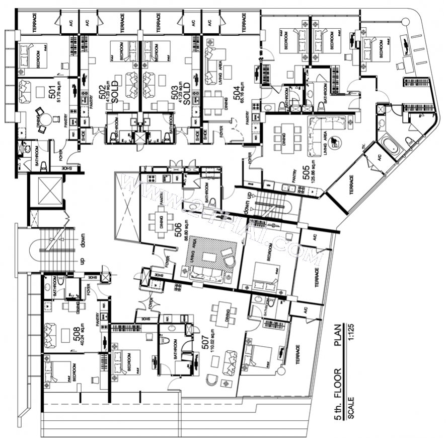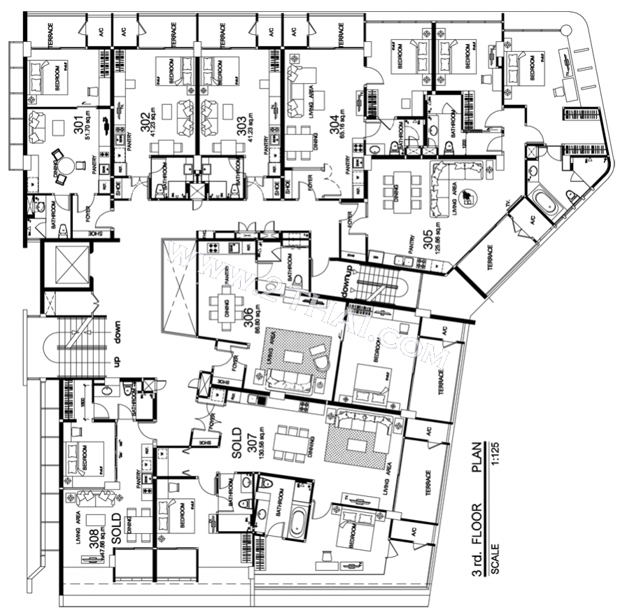 Beach Front Jomtien Residence - floor plans, building A