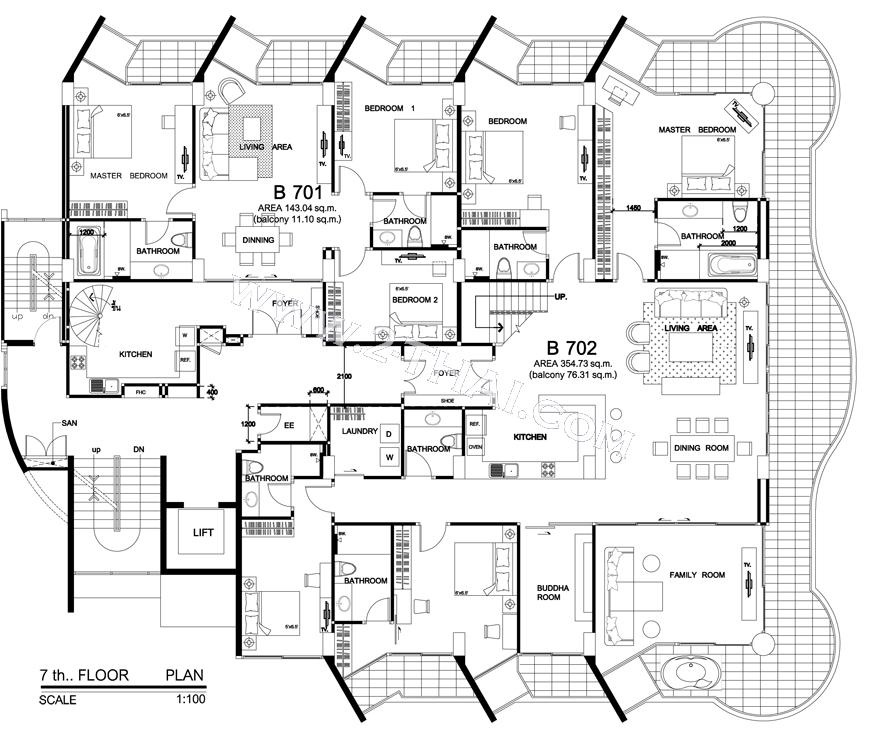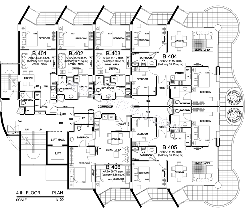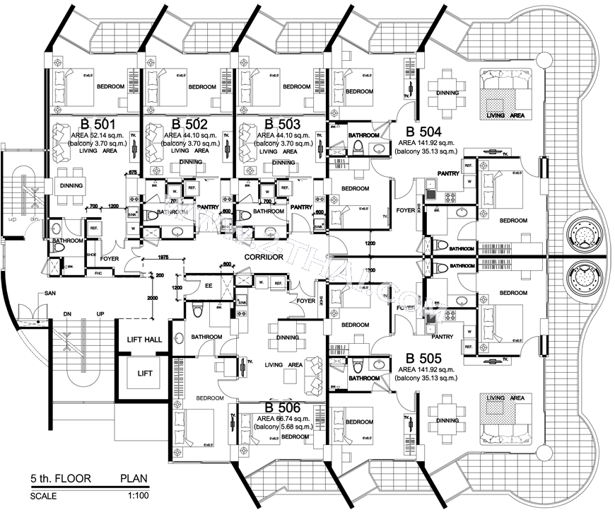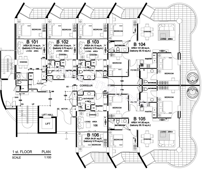 Beach Front Jomtien Residence - floor plans, building B